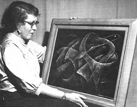 Image Source: Dorthy Morang holding painting, Nightbird, 1955, photograph courtesy of JOHN C. EMMETT
